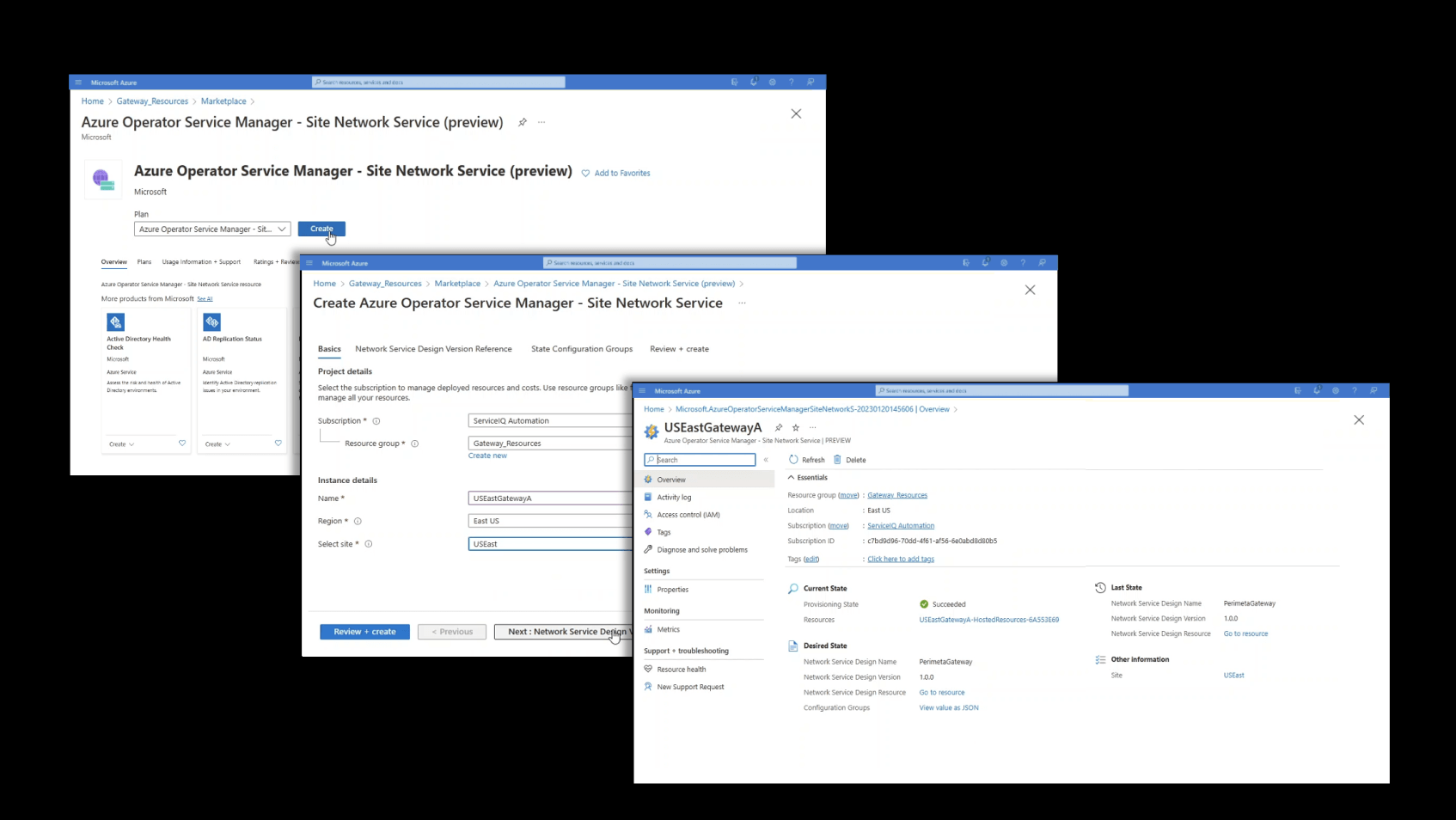 Azure Operator Service Manager reduces service orchestration complexity by consolidating software and configuration management tasks into a single set of end-to-end Azure operations. Compose and deploy services with innovative capabilities combined with flexible north- and southbound integration options for one true Azure service management interface.